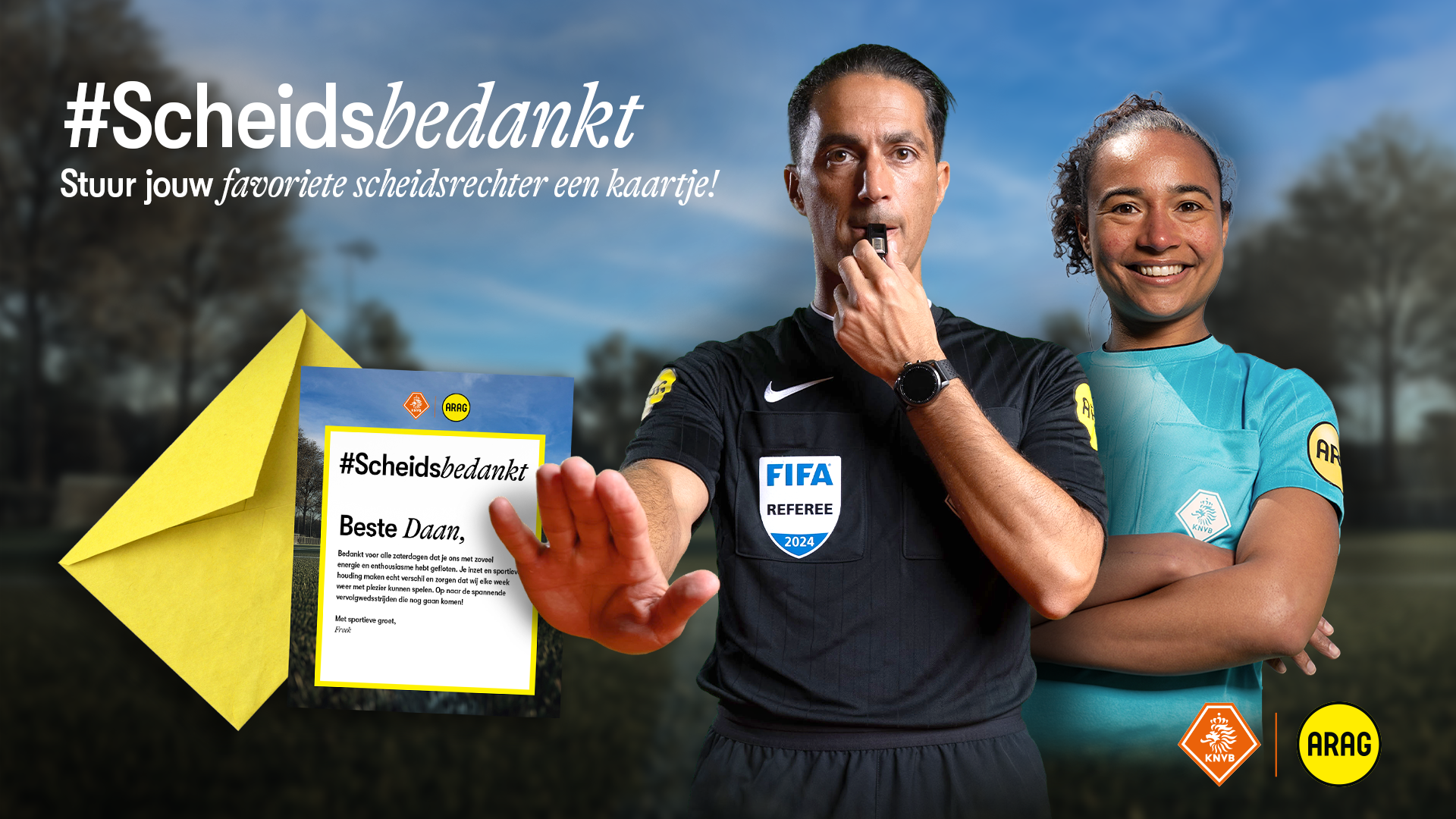 Nu is hét moment om hem of haar in het zonnetje te zetten! Stuur eenvoudig een persoonlijk digitaal kaartje en laat weten hoeveel hun inzet betekent. Kies zelf de scheidsrechter, schrijf jouw boodschap en wij zorgen dat het kaartje per mail wordt bezorgd.